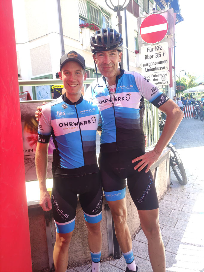 "Sebastian" und "Christian" hatten am Samstag, 15.07.2023 einen Terrain-Wechsel: „Einmal durch die Hölle und zurück“ war das Motto des härtesten Mountainbike-Marathons Österreichs, der Salzkammergut Trophy. Seit 1998 leben Radsportler aus ganz Europa inmitten der faszinierenden Bergwelt des Salzkammerguts ihre sportlichen Ambitionen aus. Unsere beiden IMPULS-Piloten entschieden sich im Rahmen der 26. Auflage für die Strecke C, mit einem ambitionierten Profil – der Start war in Obertraun. Die MTB-Strecke verlief mit ihren 79,9 km und 2428 hm entlang öffentlicher Straßen, Forstpassagen und Bikewegen. Doch der Scharfrichter des Rennens wartete bereits nach wenigen Kilometern auf die rund 400 Teilnehmer der Strecke C. Ein Anstieg, so steil, dass man bereits zu Beginn des Rennens "All-In" gehen muss, sofern man mit den schnellsten Athleten mithalten möchte. Das gelang insbesondere "Sebastian", dem seine Mountainbike-Erfahrung mehr als anzumerken war. Gerade auf unrhythmischen Passagen und technisch anspruchsvollen Trails fühlt er sich Zuhause. Auch "Christian" konnte trotz seiner Skepsis im Vorfeld mit einer absolut vorzeigbaren Performance glänzen. Beiden IMPULS-Piloten gelang es, sich im Laufe des Rennens in einer starken Gruppe wiederzufinden und das Rennen trotz der enorm heißen Sommertemperaturen ohne Leistungseinbruch finishen zu können. Das gelang mitunter auch durch „Sebastians“ mitgereister Frau „Tina“, die ab der Hälfte des Rennens mit elektrolythaltigen Getränken unseres Partners "XENOFIT" parat stand. Nach mehr als 4 Stunden Fahrzeit waren dann aber beide heilfroh, das Ziel erreicht zu haben. Auch wenn unsere beiden Starter nur knapp einen Podestplatz in ihrer Altersklasse verpasst haben, haben sich die Strapazen mit Blick auf die Overall Ergebnisliste allemal gelohnt.