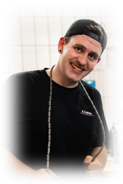 Mit seinem versiertem Blick und jeder Menge Know-how bringt er jedes Bike auf Top-Niveau – ob für's Training oder Wettkampf. Für ihn zählt jedes Detail: Er hört hin, fühlt nach, denkt voraus. Probleme? Hat er längst gelöst, bevor sie überhaupt auftreten.